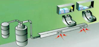 Basta varrer os cabelos cortados para o glutão e com um simples toque, tudo será aspirado para o saco de uma potente central de aspiração.